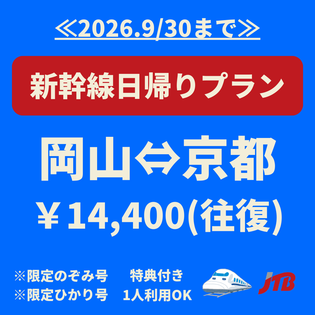 岡山から京都へ最も安く行く方法は、エースJTBが企画している「JTB日帰りプラン」を使うことです。